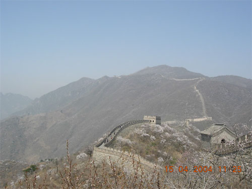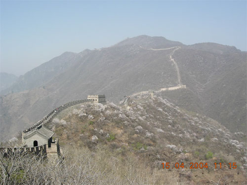 歌声未断,长城已到,两车人马会齐后便开始登城了。鸟语花香相伴左右,大家聊着天,哼着小曲,转眼之间,我们已经登上了长城。放眼东西两个方向,都看不到尽头,正如书上描述,长城宛如一条巨龙盘旋在群山峻岭之间,大家都对古代劳动人民伟大的智慧与力量无比佩服。