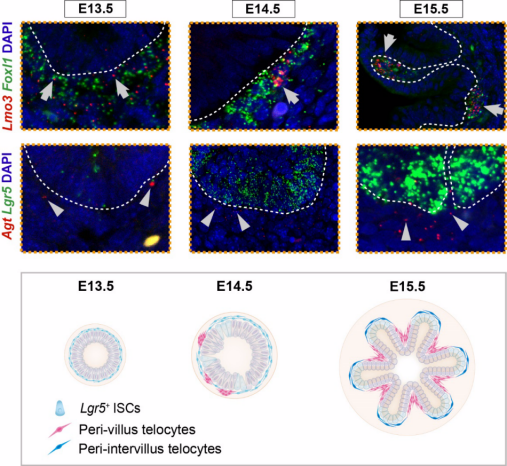 发育早期的特络细胞通过形成绒毛周围和绒毛间隙周围特络细胞,构建了初步的肠道干细胞微环境。